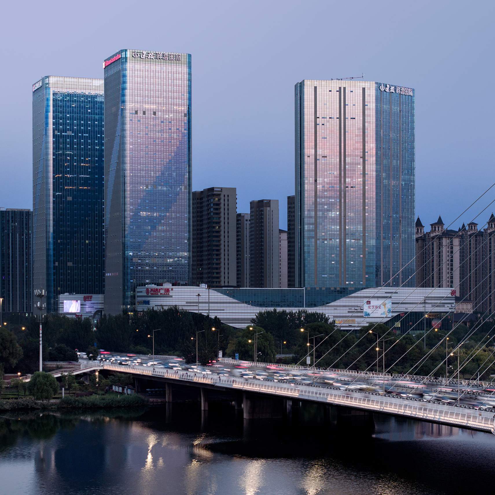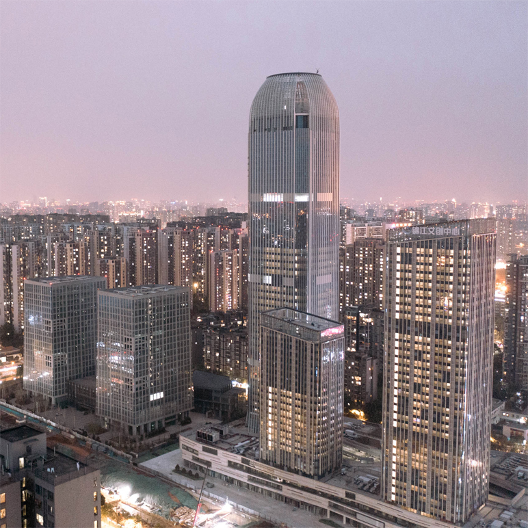 項(xiàng)目位于成都高新南區(qū),美麗的錦江河畔,兩棟塔樓分別作為新華文軒和新華發(fā)行集團(tuán)的總部辦公樓。塔樓體量巨大,建筑高度42層達(dá)