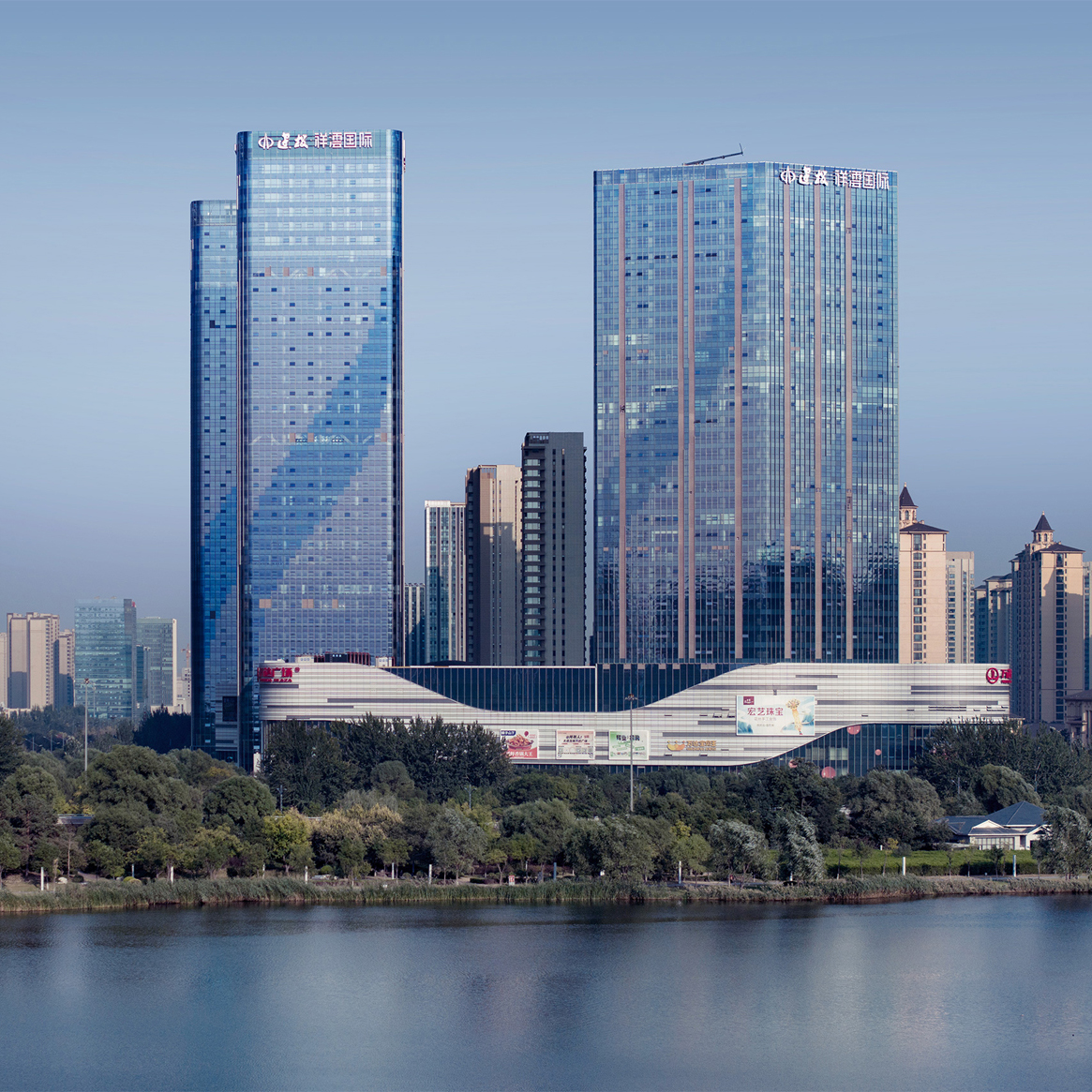 項(xiàng)目位于太原人文歷史軸線(xiàn)——汾河沿岸,同時(shí)被晉陽(yáng)湖公園、祥云公園等六大生態(tài)公園環(huán)繞,是城市發(fā)展的核心地段。商務(wù)中心由三棟