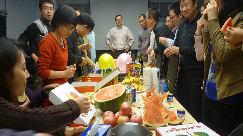 2011年3月25日,四川山鼎公司新入職員工和本月過生日員工,齊聚一堂,舉行了一場熱鬧又別開生面的聚會。張總、文總、各所(組)及行政部門負(fù)責(zé)人也參加了聚會。新鮮水果、各種零食、美味蛋糕,供同事們隨意取用,讓大家在緊張工作之余有了難得的放松機(jī)會。為了歡迎新員工,并深入了解四川山鼎的近況,張總通過大量詳實(shí)的圖片和資料,介紹了山鼎近期的幾個重要項(xiàng)目。
