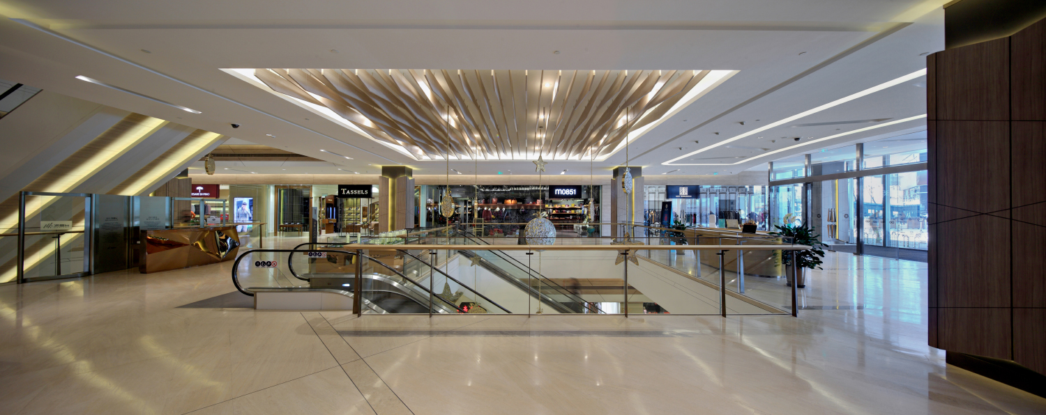 本次改造主要包括地下車庫、后勤管理用房、商業(yè)、辦公樓大堂及標(biāo)準(zhǔn)層的公共區(qū)域、酒店式公寓及會所等整體室內(nèi)工程,以及室外城市廣場景觀、商業(yè)立面等。通過建筑、結(jié)構(gòu)、機電、室內(nèi)、導(dǎo)視、景觀、幕墻、照明等專業(yè)工程師的緊密配合,旨在通過創(chuàng)新型的現(xiàn)代設(shè)計手法和專業(yè)設(shè)計,重塑了嘉里中心的商業(yè)定位及其氛圍,提升了其商業(yè)價值與品質(zhì)。