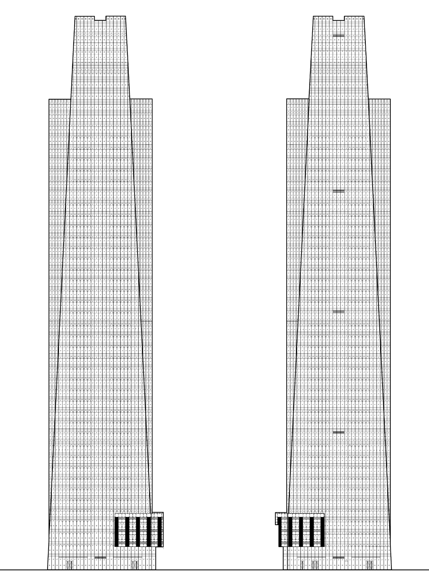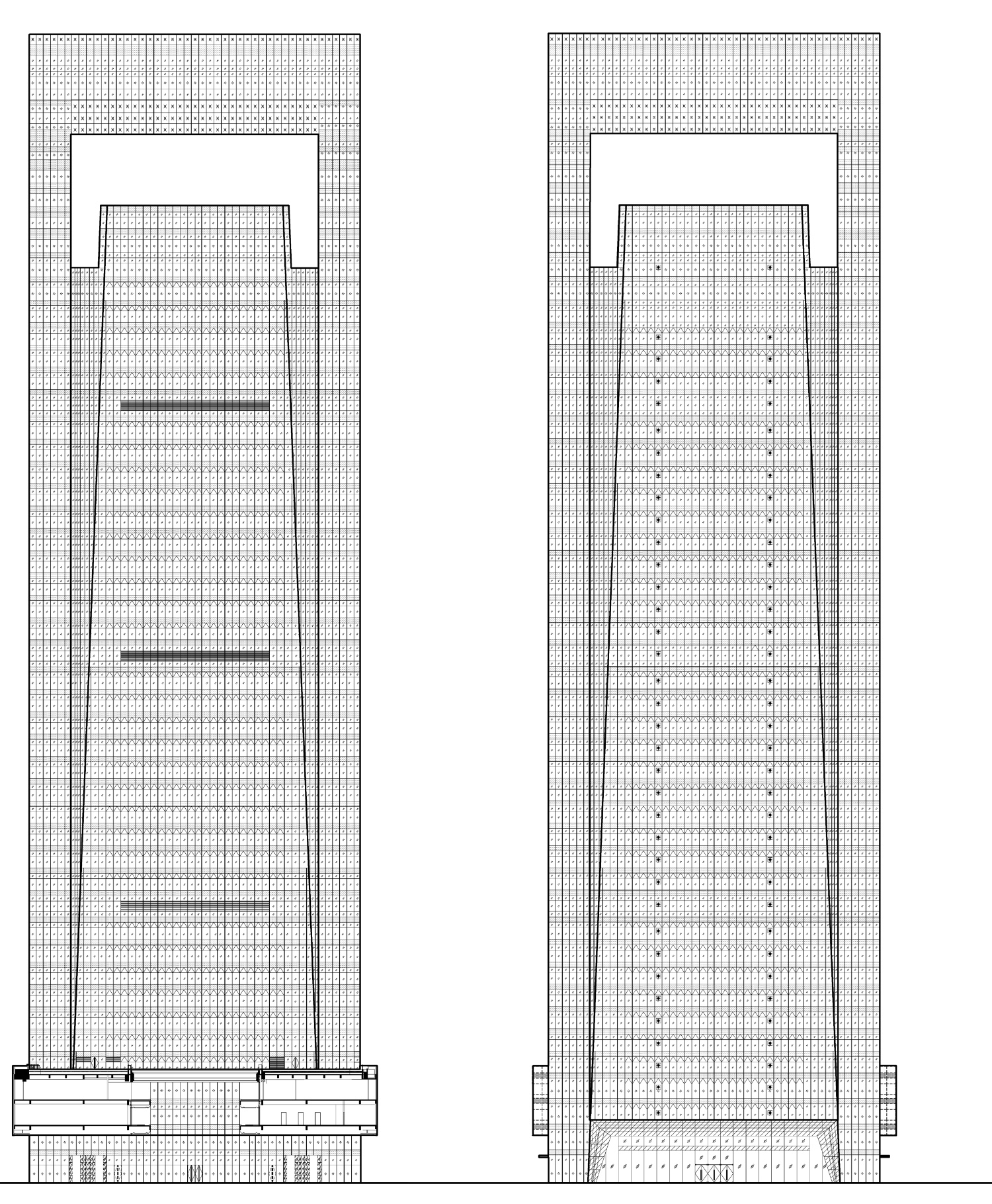 建筑頂部門架式觀光廊橋是項目的點睛之筆。建筑師通過對業(yè)主企業(yè)文化的理解和概括,抽象出最具代表性的建筑形體。門架造型隱喻“中交之門、天府之門的”精神內(nèi)涵,莊嚴的建筑形態(tài)體現(xiàn)“行天下、天下行”的國際化大企業(yè)氣質(zhì),傳達了四通八達的企業(yè)文化。