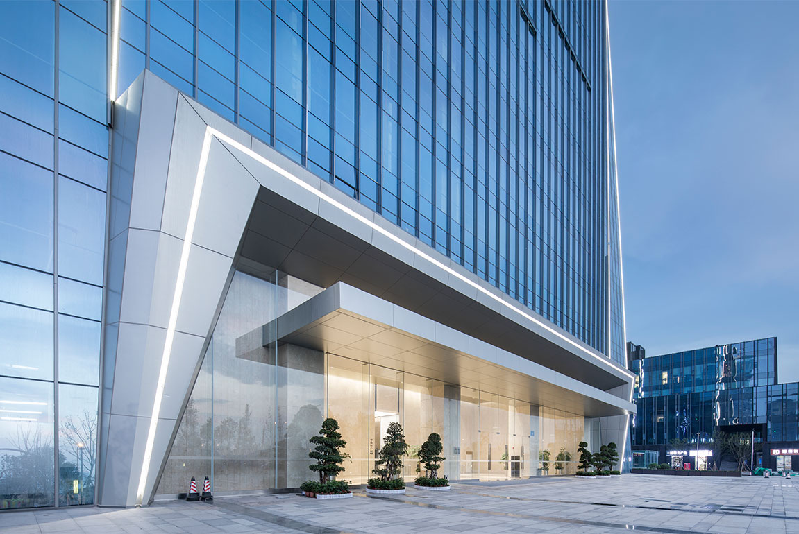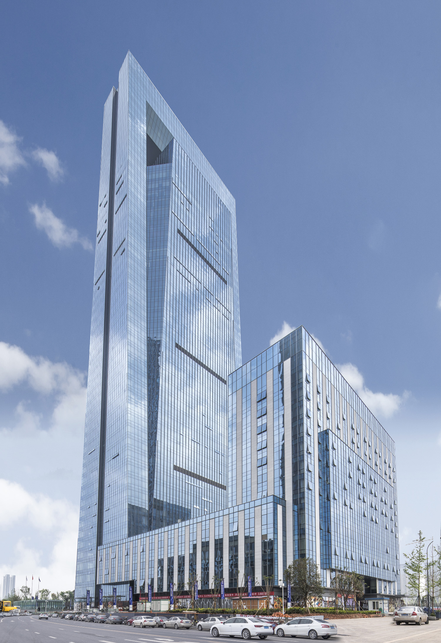 中交國際中心由一棟220M的超高層甲級辦公樓,一棟144個房間的商務精品酒店,4層定制型商業(yè)商務配套等建筑組成集合式綜合體。項目位于成都天府新區(qū)秦皇寺中央商務區(qū),緊鄰天府公園,占據(jù)區(qū)域最佳自然環(huán)境。高密度的城市中心,便利的交通,一線景觀資源,最佳城市展示面。諸多條件決定了項目具備了城市地標的潛力。