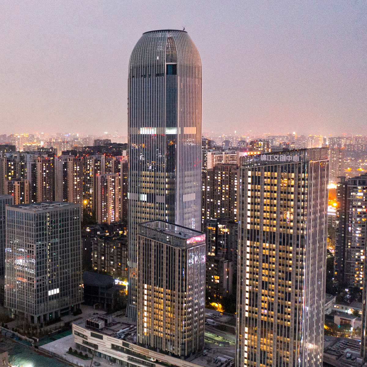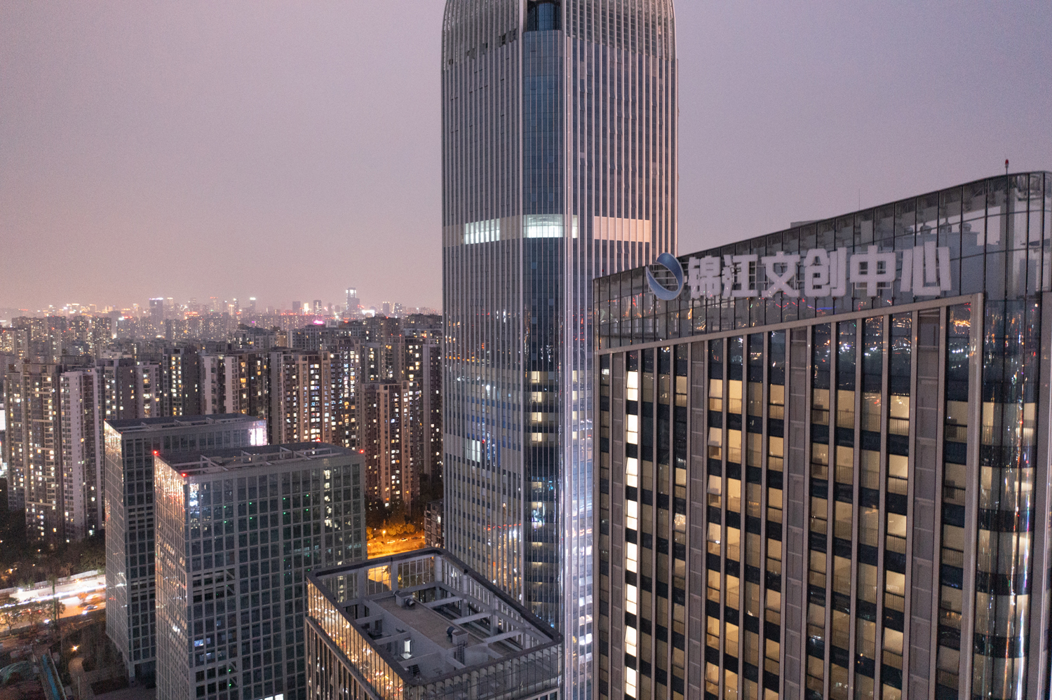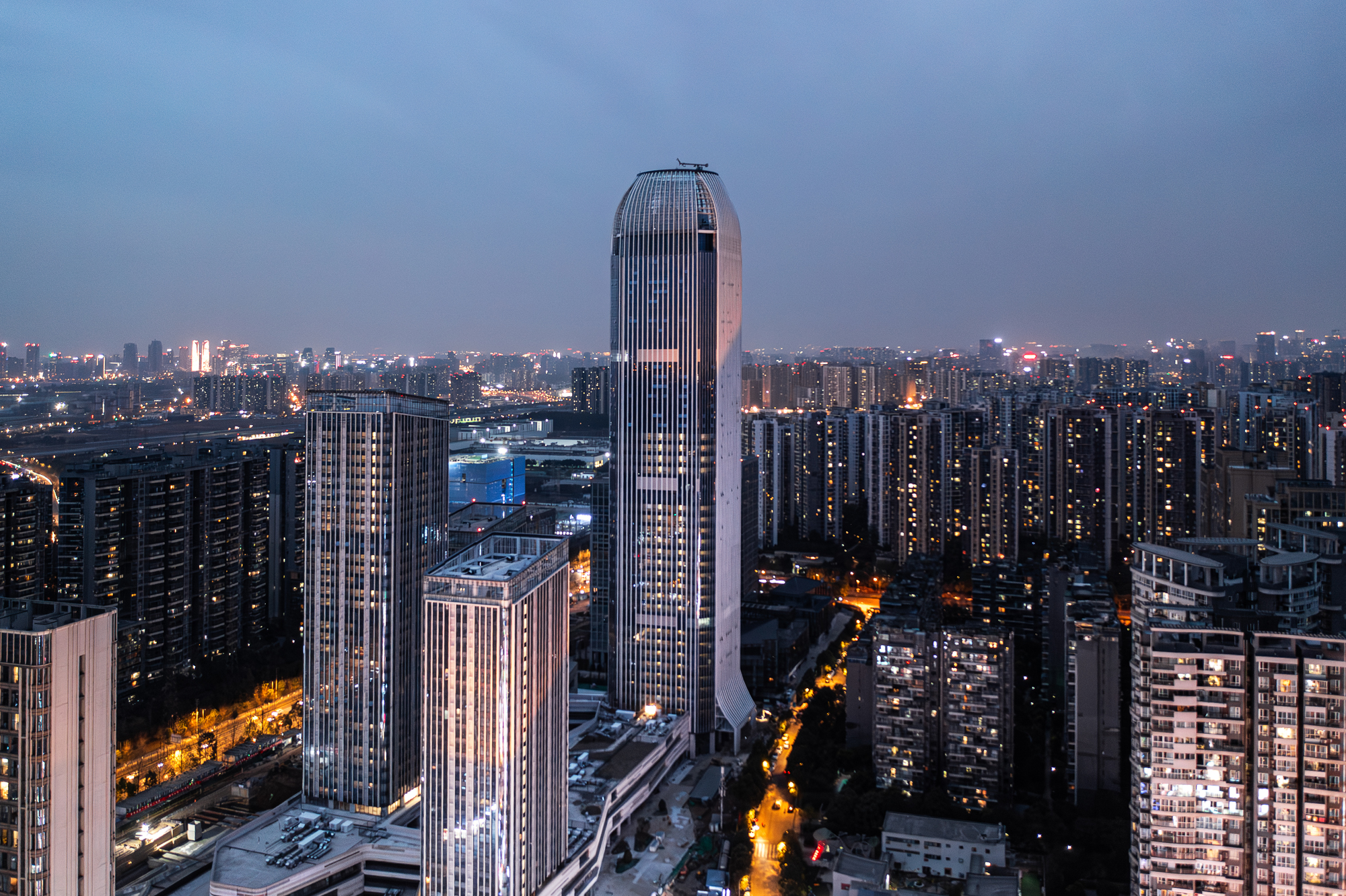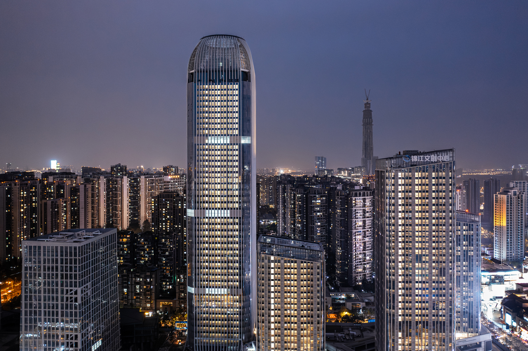 項(xiàng)目建設(shè)用地位于成都市三環(huán)外東南方,驛都大道與成龍大道之間的東部發(fā)展片區(qū)——成都重要的旅游休閑地塊三圣鄉(xiāng)片區(qū),隸屬于成都市錦江區(qū),用地性質(zhì)為商業(yè)服務(wù)業(yè)設(shè)施用地。項(xiàng)目用地位于錦江區(qū)東洪路以東、梔子街以南、喜樹街以西、成龍大道以北。場址地理位置優(yōu)越,交通便利,水、電、路、通訊等配套基礎(chǔ)設(shè)施較為齊全,建設(shè)條件齊備。項(xiàng)目包括超高層辦公和多層街區(qū),總建筑面積237,900平方米,其中地上184,192平方米,兩層地下室,超高層塔樓共計60層,建筑高度258.25米,多層街區(qū)包含媒體中心、展示中心和體驗(yàn)中心等,共計4層,建筑高度20.65米。項(xiàng)目各個功能區(qū)通過立體連廊相互聯(lián)系,有效對接。
