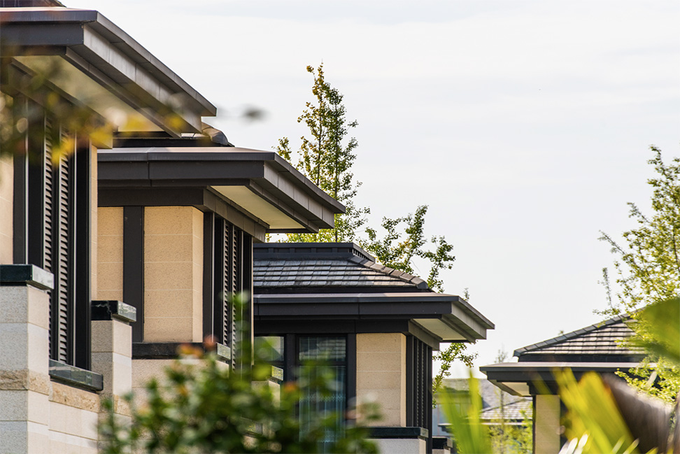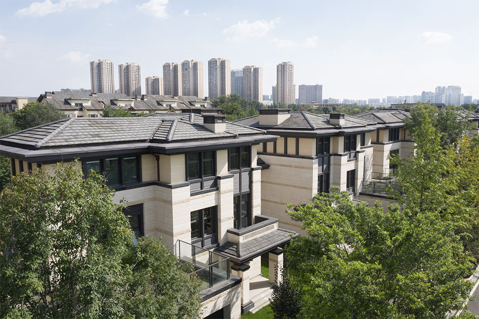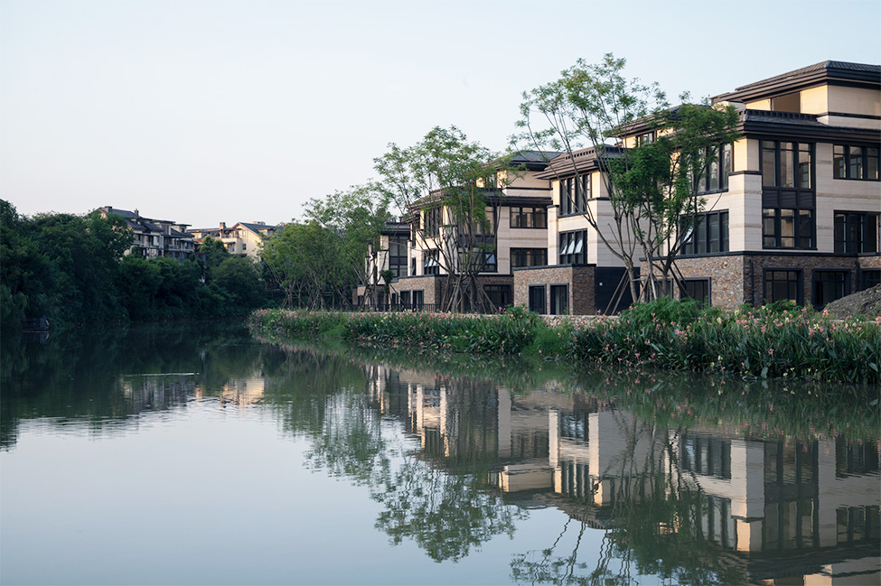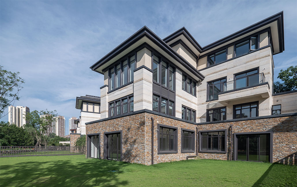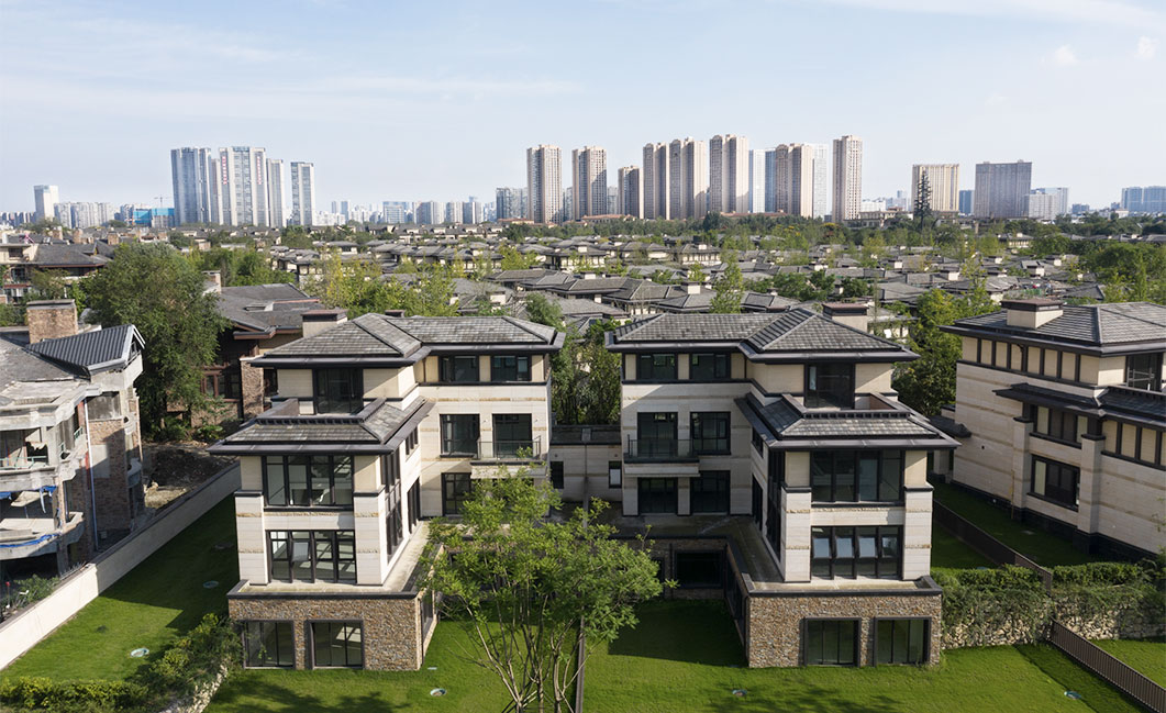 項目位于成都市金牛區(qū),為華僑城東岸六期地塊,三面臨水,南側(cè)為項目已建內(nèi)部道路。占地84,506平方米,有一層地下室,地面上由41棟2層住宅、10棟3層住宅和1棟2層服務(wù)用房構(gòu)成,總建筑面積:65,878平方米,其中地面以上30,000平方米 ,項目用地東西兩側(cè)靠景觀內(nèi)河,沿兩側(cè)布置大戶型住宅,保證大戶型住宅在小區(qū)中享有最大化的景觀資源,彰顯奢華品質(zhì);在用地中部打造內(nèi)聚性景觀,將較大戶型住宅作為一個組合整體布置于此;在中部與外側(cè)之間采用靈活的組合方式布置較小戶型住宅,充分利用外部景觀資源及自身的圍合景觀,使每戶均有良好的景觀朝向;在小區(qū)主入口設(shè)置商業(yè)用房,方便服務(wù)整個小區(qū)。