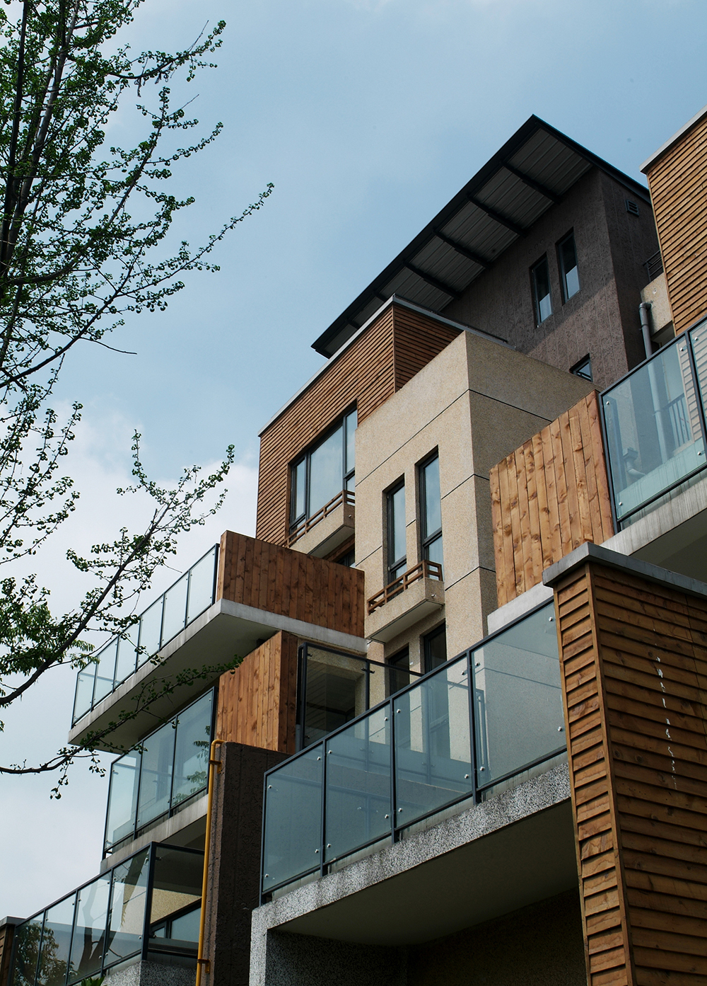 項目比肩國際品質(zhì),顛覆了傳統(tǒng)的住宅規(guī)劃思路,以森林島居為規(guī)劃理念,采用多組團圍而不合的布局,高層穿插其中形成豐富立體的庭院空間和城市天際線。高層住宅多層次退臺讓每層每戶都有大露臺。設(shè)計的亮點是設(shè)計師提出了外墻材料采用傳統(tǒng)水刷石和戶外木飾結(jié)合的現(xiàn)代化風(fēng)格的立面設(shè)計思路,可謂傳統(tǒng)工藝與現(xiàn)代設(shè)計的完美融合。水刷石的傳統(tǒng)工藝,當時幾乎沒有工人會做,設(shè)計師、開發(fā)商和施工方的通力合作下,經(jīng)過了多次實驗,才得以實施。十幾年過去了,項目還是極具魅力,一直是城市景觀的焦點。