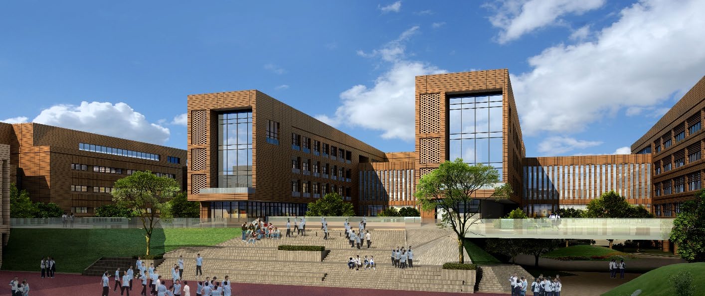 貫穿南北設(shè)置承載歷史文化的主軸空間作為公共區(qū),圖書館作為標(biāo)志性建筑置于入口廣場,與北側(cè)體育館相呼應(yīng)。