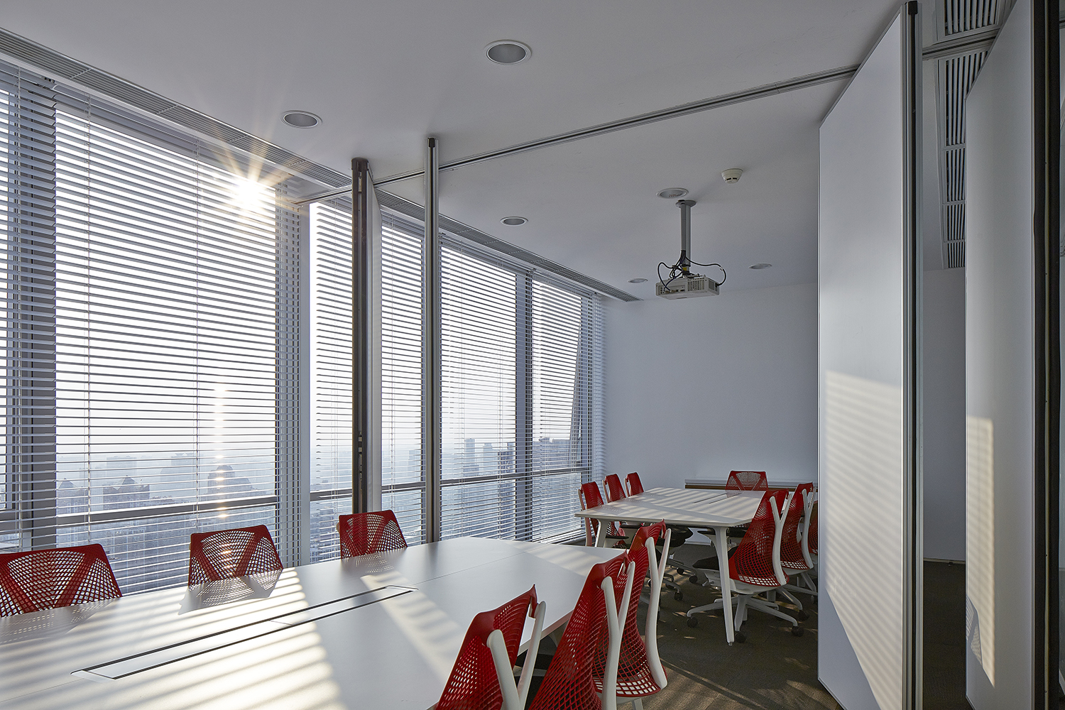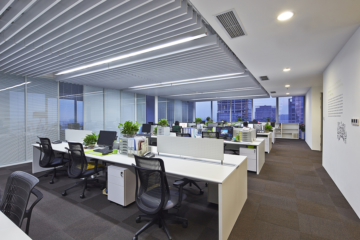 綠色:本案設(shè)計(jì)秉執(zhí)“綠色”環(huán)境概念,強(qiáng)調(diào)設(shè)計(jì)中人與環(huán)境的和諧關(guān)系。大量采用可回收材料,高架地板系統(tǒng)避免施工中的粉塵污染及濕作業(yè),與供應(yīng)商共同研發(fā)“WORK STATION”(工作站)系統(tǒng),提供最佳的人體工程學(xué)解決方案。在工作區(qū)周圍設(shè)置大量磁力白板,降低能耗。呈現(xiàn)真正的“綠色”工作空間。