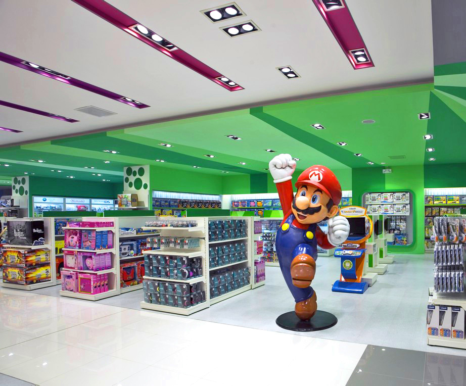 位于菲律賓的玩具王國(guó),是亞洲最大的玩具連鎖店,面積超過 4,000 平方米。此項(xiàng)目既要考慮現(xiàn)有的店面,又要考慮積極增長(zhǎng)的計(jì)劃,客戶要求我們創(chuàng)建一個(gè)更靈活、更高效、更容易推廣的標(biāo)準(zhǔn)店,而且建成后,可以靈活改變售賣商品的形式。為了擁有一個(gè)干凈的地面以適應(yīng)不同的商品,大部分的設(shè)計(jì)主要針對(duì)天花和墻面。采用不斷變化的燈光效果,打造了一個(gè)色彩豐富且具有趣味性的活躍空間。中央銷售區(qū)采用上下顛倒的盒子設(shè)計(jì),使商品更加突出。設(shè)計(jì)中采用不同的設(shè)計(jì)亮點(diǎn)來區(qū)分商品類別,方便購(gòu)物者選購(gòu)。玩具王國(guó)是門店設(shè)計(jì)的一個(gè)里程碑。