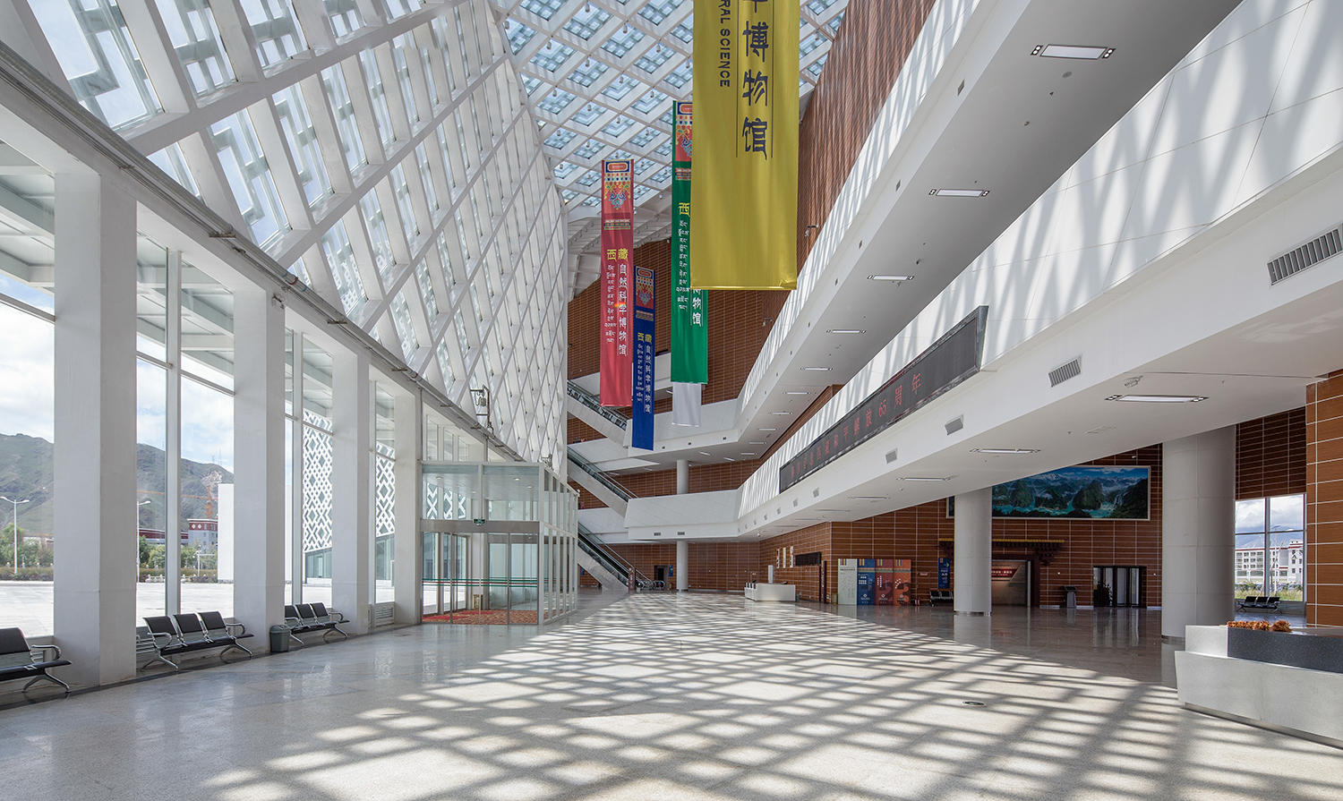 西藏自然科學博物館將作為政府公共平臺,向公眾展示自治區(qū)自然人文特色,通過自然科學館、科技館和文化展覽館三個主題常設展館,以及天文觀測臺、3D、4D影院等各種多媒體設施,提供充滿趣味的科普體驗。項目結(jié)合當?shù)丨h(huán)境氣候優(yōu)勢,以表皮遮陽、太陽能和地源熱泵潔凈能源體系利用等措施,同時達到中國《綠色建筑評價標準》和英國BREEAM評價標準,外立面剪空裝飾外皮的設計靈感配合了高原地區(qū)遮陽要求,室內(nèi)中庭內(nèi)投下的靈動光影,帶給公眾無盡的想象力,抽象詮釋了藏文化中曼陀羅和吉祥結(jié)之間的演變。