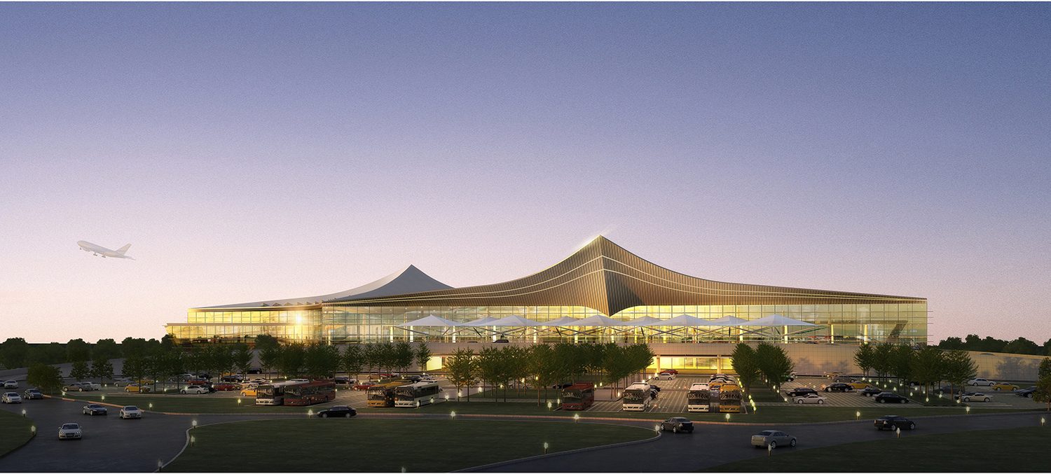 項(xiàng)目的設(shè)計(jì)理念是“雙雁呈祥”。衡陽雅稱“雁城”,“萬里衡陽雁,尋常到此回”的美景令人遐思無限。優(yōu)美的體態(tài),穩(wěn)健的身形,有序的隊(duì)列,持久的奮進(jìn)——大雁的種種特質(zhì)寓意著“雁城”衡陽令人神往的過去,生機(jī)勃勃的現(xiàn)在和充滿希望的未來。項(xiàng)目設(shè)計(jì)從現(xiàn)代化、標(biāo)志化、藝術(shù)化、生態(tài)化等角度全方位營(yíng)造衡陽機(jī)場(chǎng)航站區(qū)之“雁城”印象。