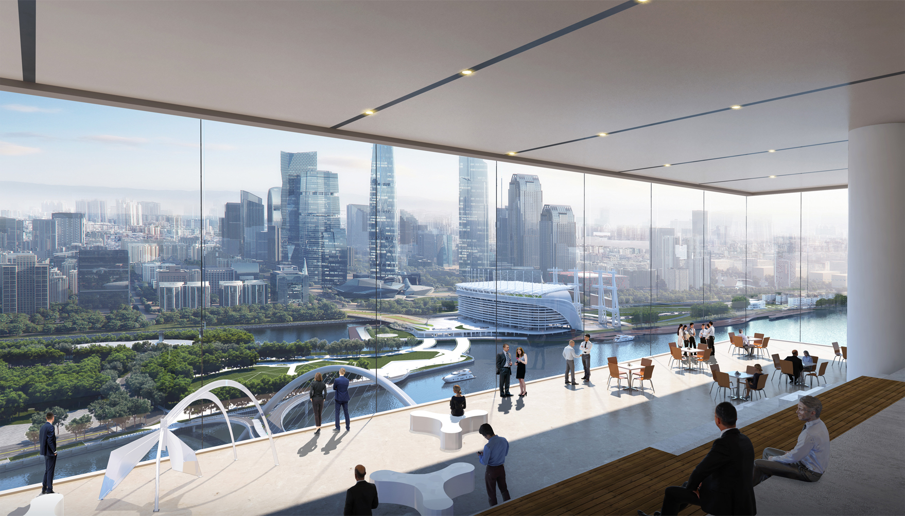 項(xiàng)目位于廣州市海珠區(qū),規(guī)劃上屬于傳媒創(chuàng)意產(chǎn)業(yè)區(qū),新城市中軸區(qū)。項(xiàng)目集辦公、會議、商業(yè)等多種功能于一體,互聯(lián)共享,彼此激發(fā),提升整體業(yè)態(tài)價(jià)值。設(shè)計(jì)打破了傳統(tǒng)的單一首層設(shè)置,創(chuàng)造性地塑造了六 “首層”空間,通過飛天梯、穿梭梯、企業(yè)專梯等,引導(dǎo)人流向上直達(dá)各首層,激活商業(yè)價(jià)值。