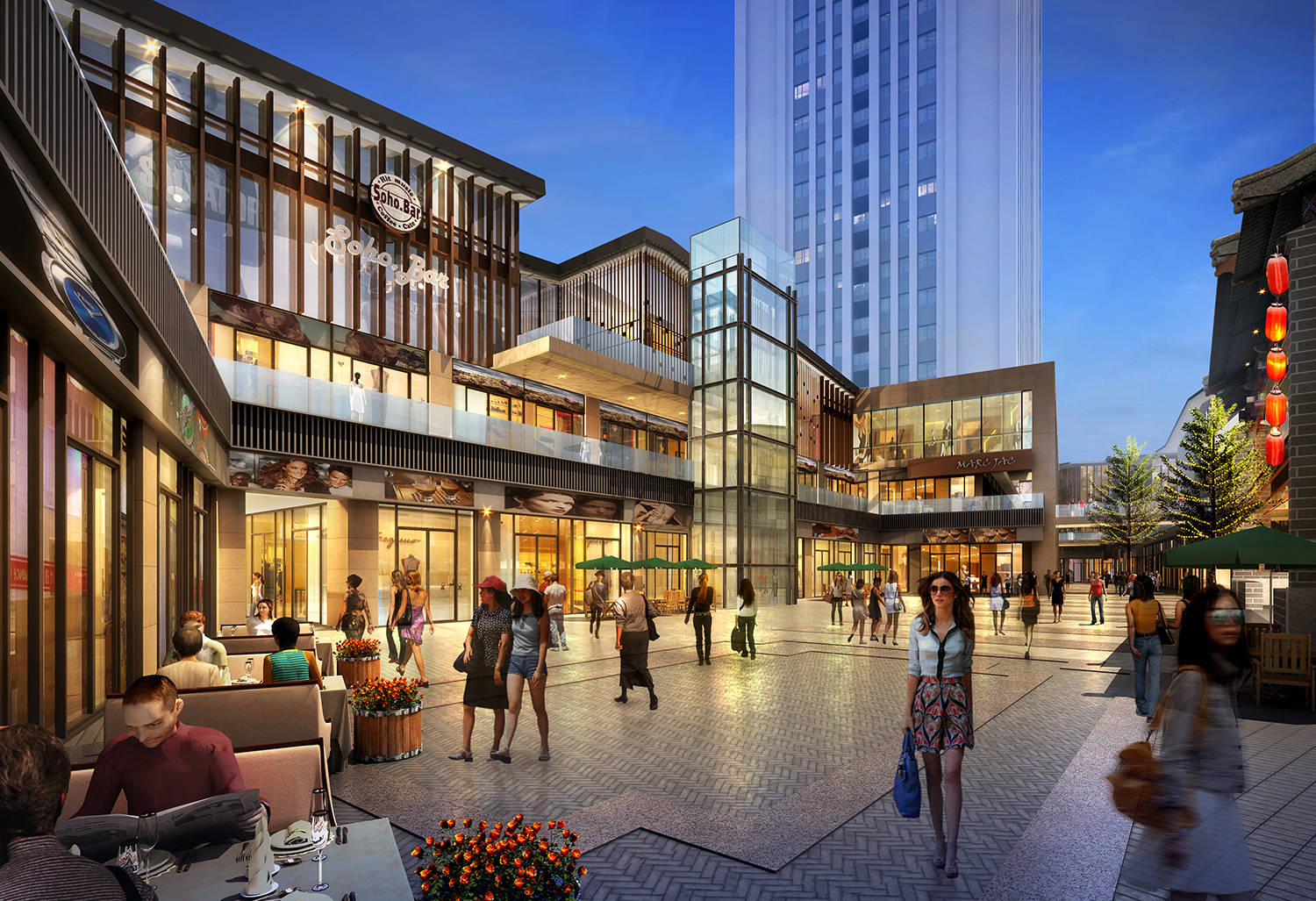 項(xiàng)目遵循“自然、傳統(tǒng)、共生、發(fā)展”的設(shè)計(jì)理念,在設(shè)計(jì)中以現(xiàn)代手法詮釋傳統(tǒng)文化,并將其融入商業(yè)街區(qū)。規(guī)劃從傳統(tǒng)的古街機(jī)理中得到啟發(fā),采用現(xiàn)代構(gòu)成手法,呈現(xiàn)有文化積淀的城市機(jī)理。