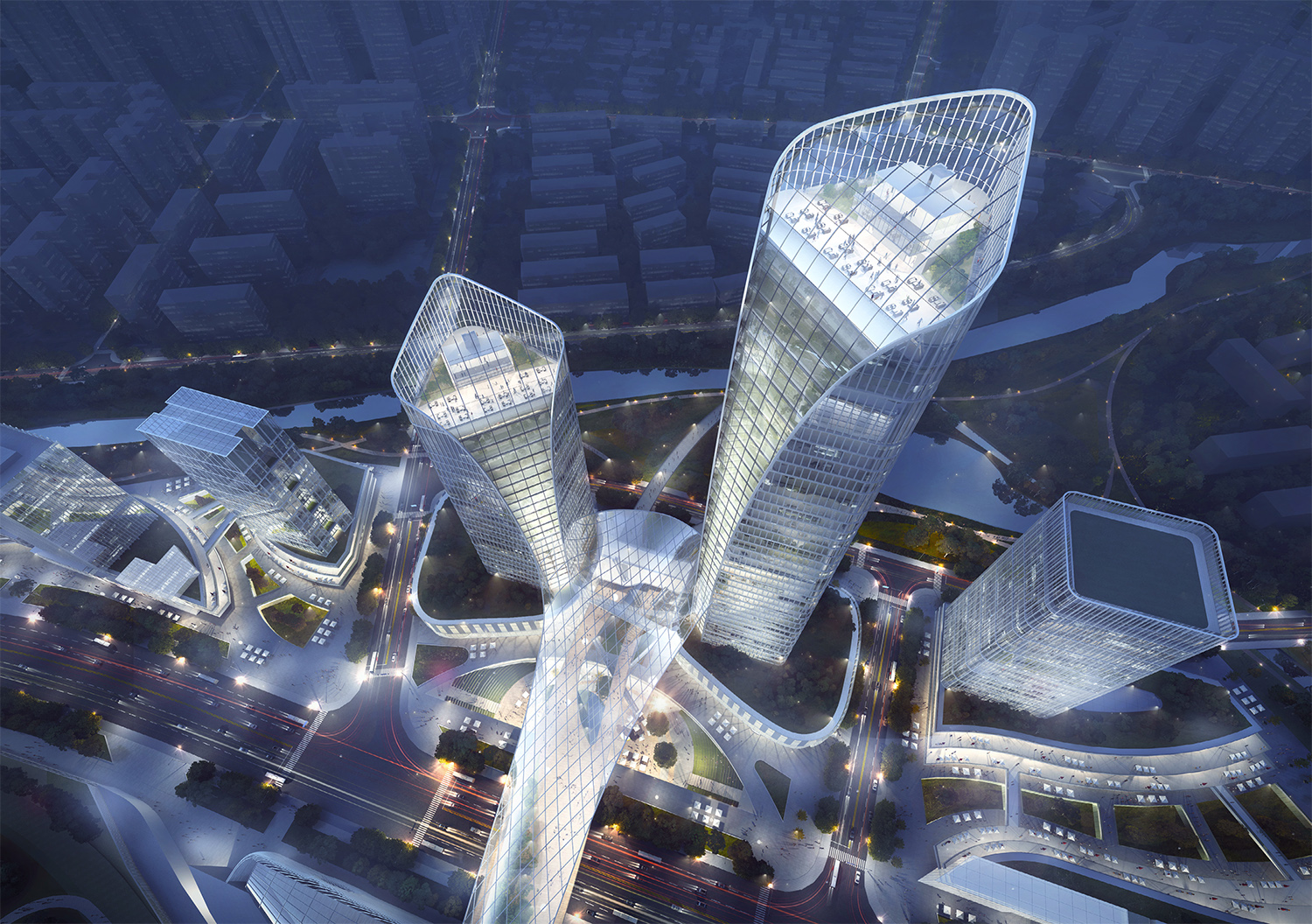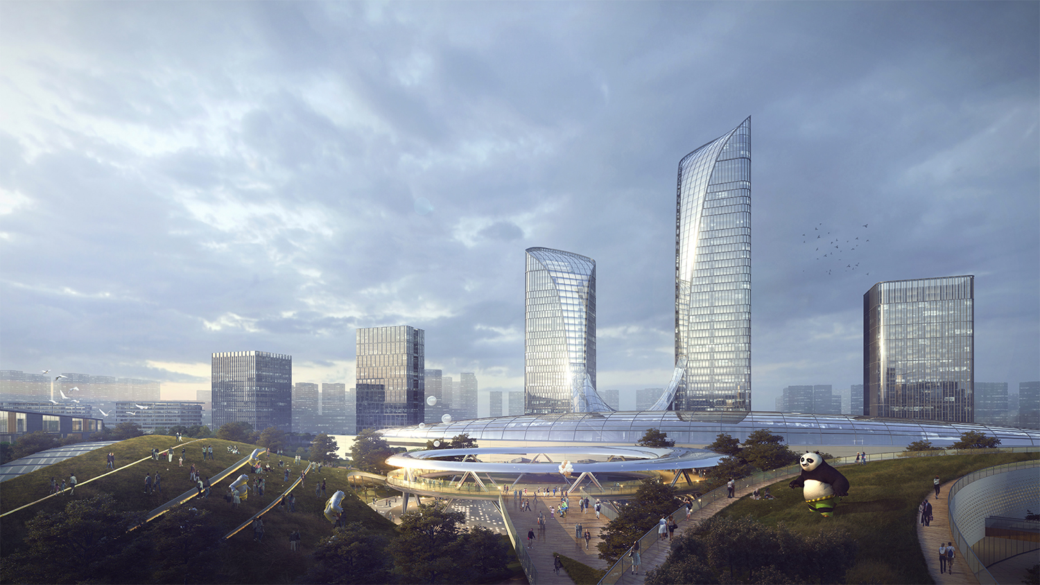 項(xiàng)目位于成都郫都區(qū),地處于北四環(huán)和成都第二繞城高速之間,距離市中心天府廣場(chǎng)僅有 27km,配套齊全,是成都最具土地利用價(jià)值的地塊之一。規(guī)劃設(shè)計(jì)立足于為郫都區(qū)打造一座“理想城”,重新定義品質(zhì)人文的出行生活方式。打破常規(guī)的封閉式站廳做法,破除封閉墻,將站廳與相連地塊地下空間相接,實(shí)現(xiàn)地鐵站廳層與周邊地塊便捷可達(dá)性,最大化的帶動(dòng)周邊地塊業(yè)態(tài)的價(jià)值。核心區(qū)以兩棟標(biāo)志性塔樓為主體,兩座塔樓傲然佇立于沱江河畔,空中廊橋如同一條瀑布順著兩座塔樓飛流直下,匯入地塊內(nèi)部,形成總部金融、商業(yè)街區(qū)、文創(chuàng)辦公、創(chuàng)新展示等多種業(yè)態(tài)。